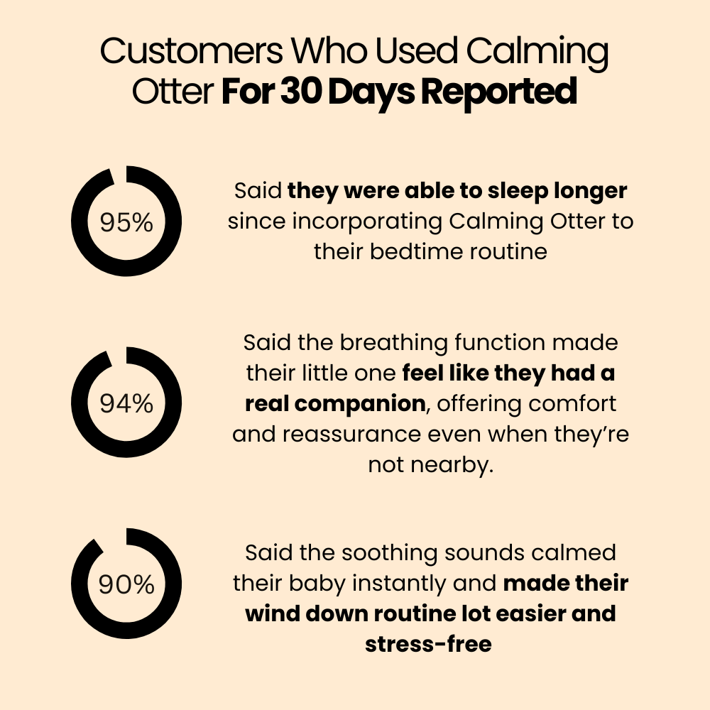 Introducing the Toddla™ Calming Otter – the ultimate sleep companion for your little one. Designed to help your baby fall asleep faster, this plush otter mimics the rhythmic motions of breathing, creating a soothing, calming effect that eases your baby into a restful slumber.